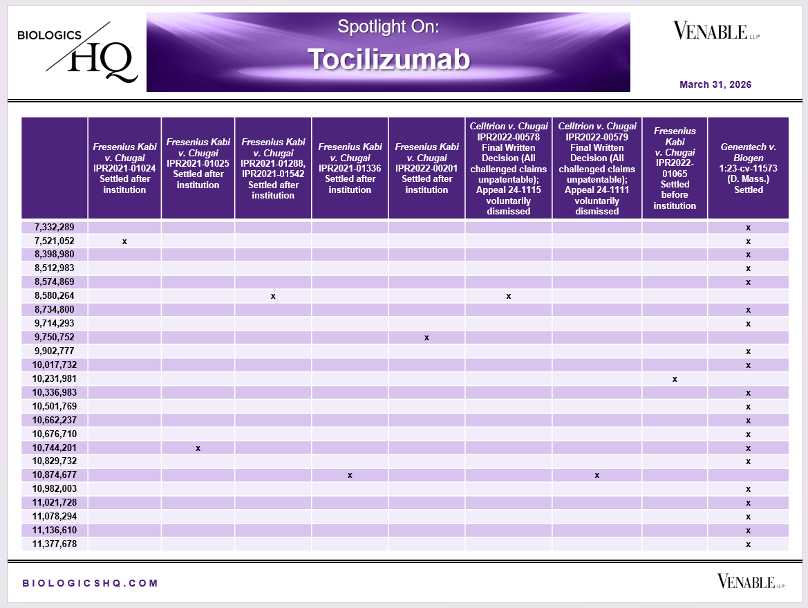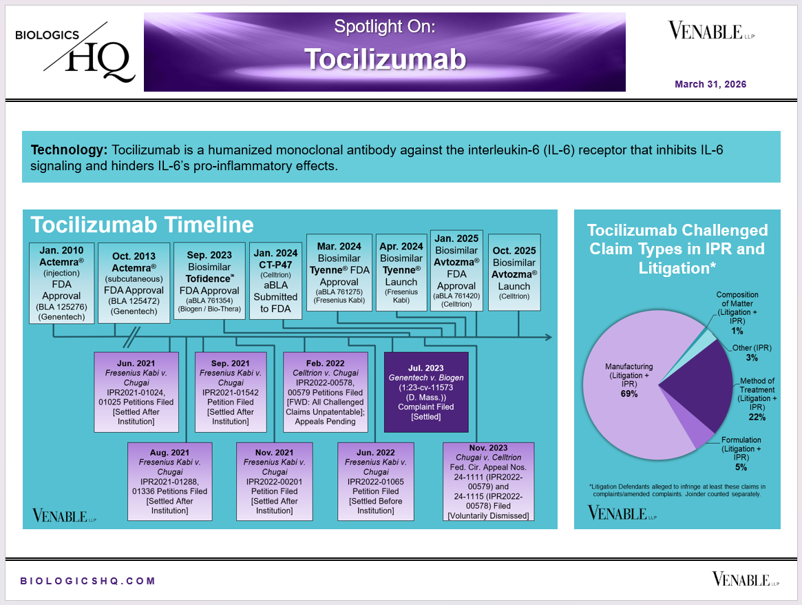 *Tocilizumab Challenged Claim Types in IPRs: Claims are counted in each IPR, so claims from the same patent challenged in multiple IPRs are counted more than once. Within each IPR, claims are counted only once, whether they are challenged under § 102, § 103, or both.