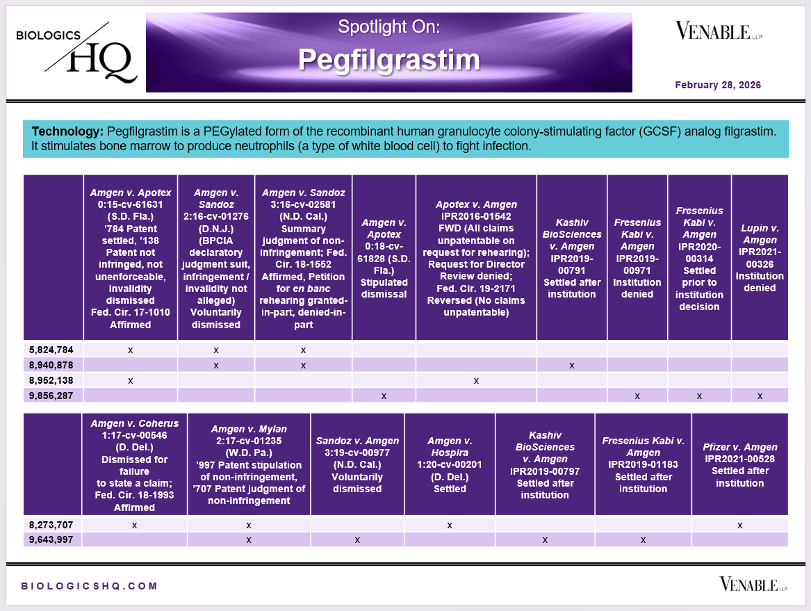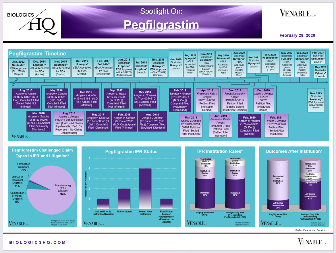 *Pegfilgrastim Challenged Claim Types in IPR and Litigation: Claims include those challenged in litigations and IPRs. Claims are counted in each litigation and IPR, so claims from the same patent challenged in multiple litigations/IPRs are counted more than once. Within each litigation a claim is counted only once. Within each IPR, claims are counted only once, whether they are challenged under § 102, § 103, or both. Claims in litigations are determined based on claims alleged to be infringed or invalid in Complaints.