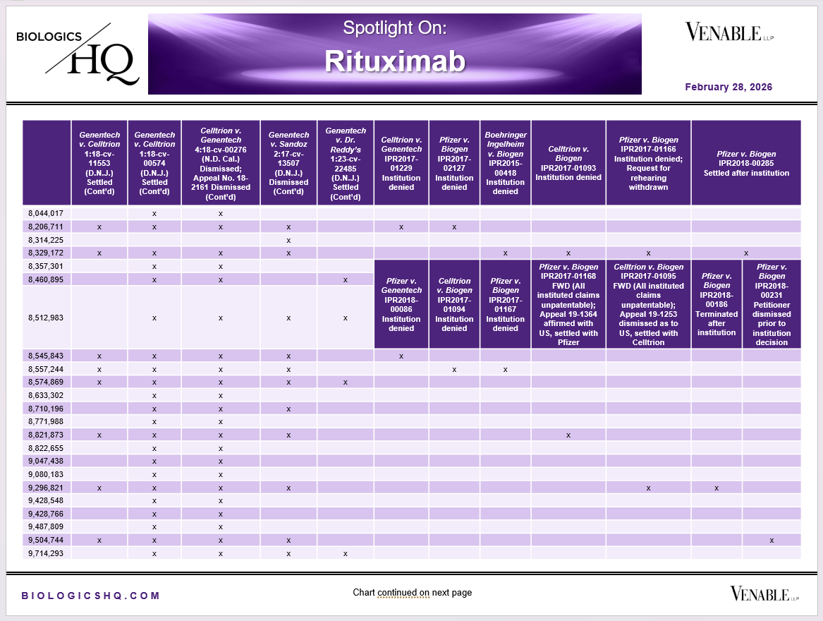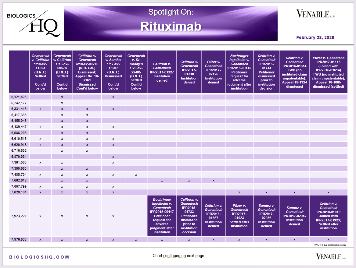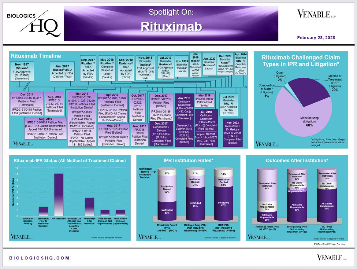 *Rituximab Challenged Claim Types in IPR and Litigation: Claims include those challenged in litigations and IPRs. Claims are counted in each litigation and IPR, so claims from the same patent challenged in multiple litigations/IPRs are counted more than once. Within each litigation a claim is counted only once. Within each IPR, claims are counted only once, whether they are challenged under § 102, § 103, or both. Claims in litigations are determined based on claims alleged infringed in Complaints.