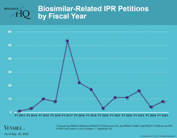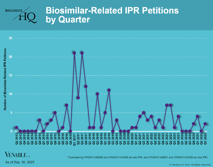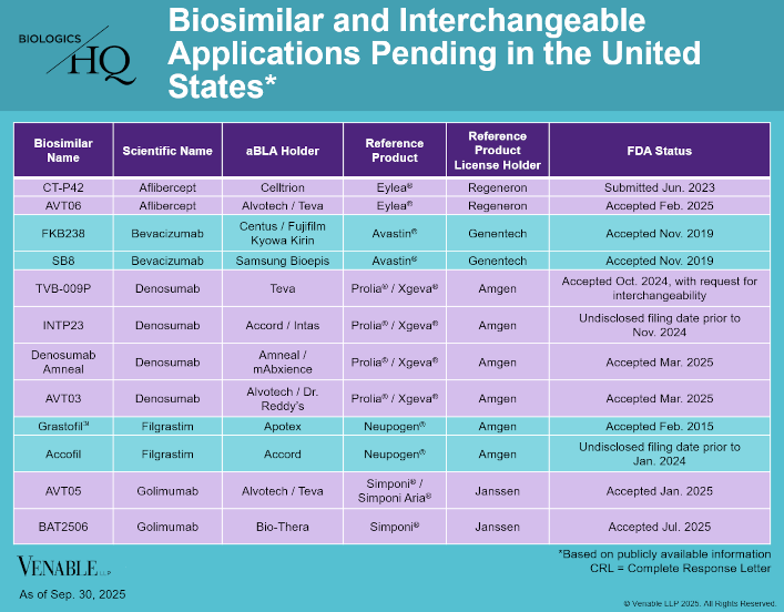Information contained in the Venable BiologicsHQ database relates to FDA-approved drug products listed in the CDER Purple Book or on the FDA website (www.fda.gov). Information relating to FDA licensed products, FDA-approved indications, and aBLA and 505(b)(2) applications is obtained from public sources including the U.S. FDA website (www.fda.gov). Information relating to litigations is given only for cases active from January 31, 2010 onward. Information relating to foreign biosimilar / biologics follow-on products approved in Australia, Canada, the E.U., Japan and South Korea is from public sources. Statistics graphics are compiled from information contained in the Venable BiologicsHQ database.