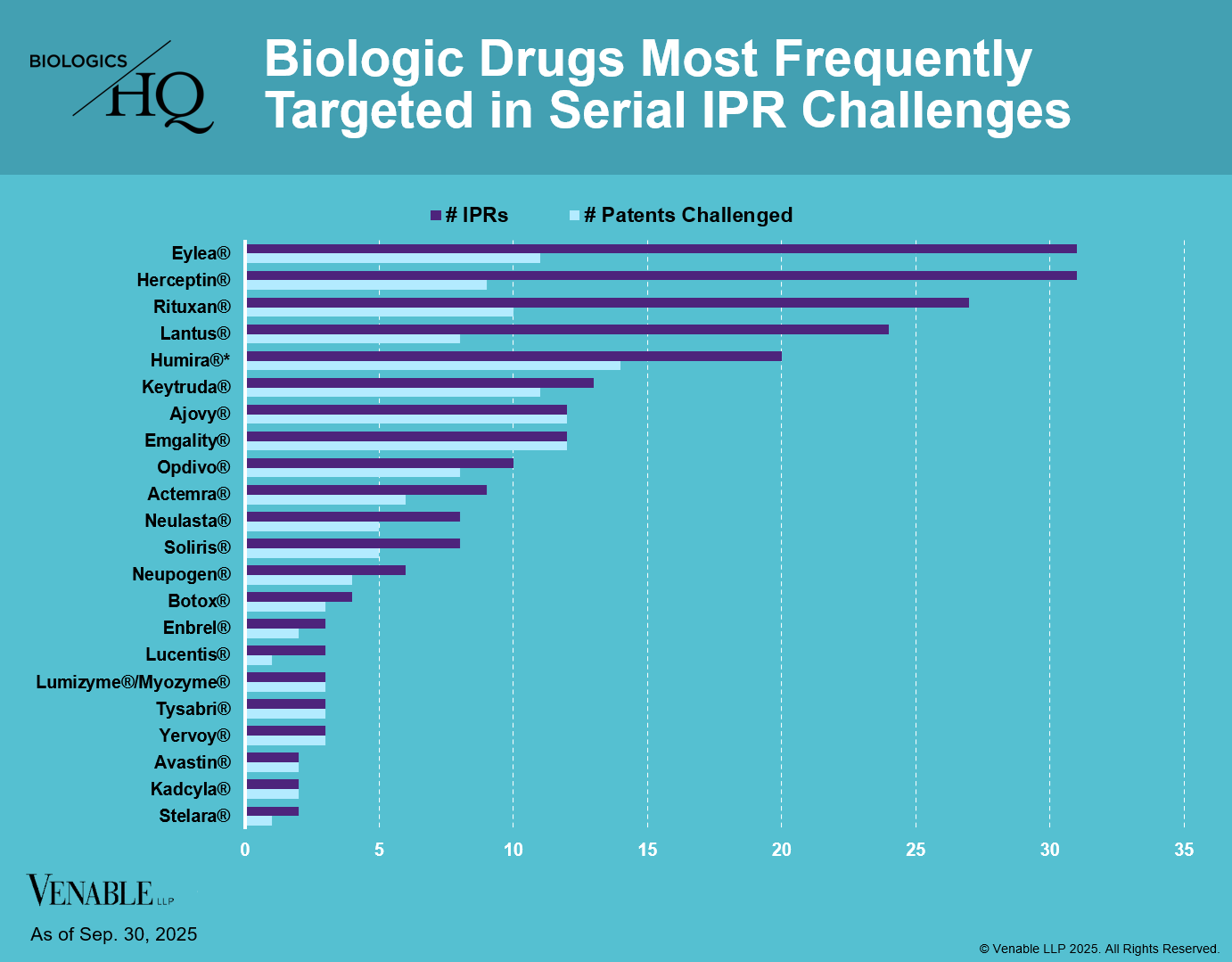 Biologic Drug IPR Petitions include IPR petitions relating to CDER-listed / 505(b)(2) biologic products. IPR petitions relating to manufacturing patents that may be relevant to multiple products (for example, U.S. Patent No. 6,331,415 (a “Cabilly” patent)) are not included.