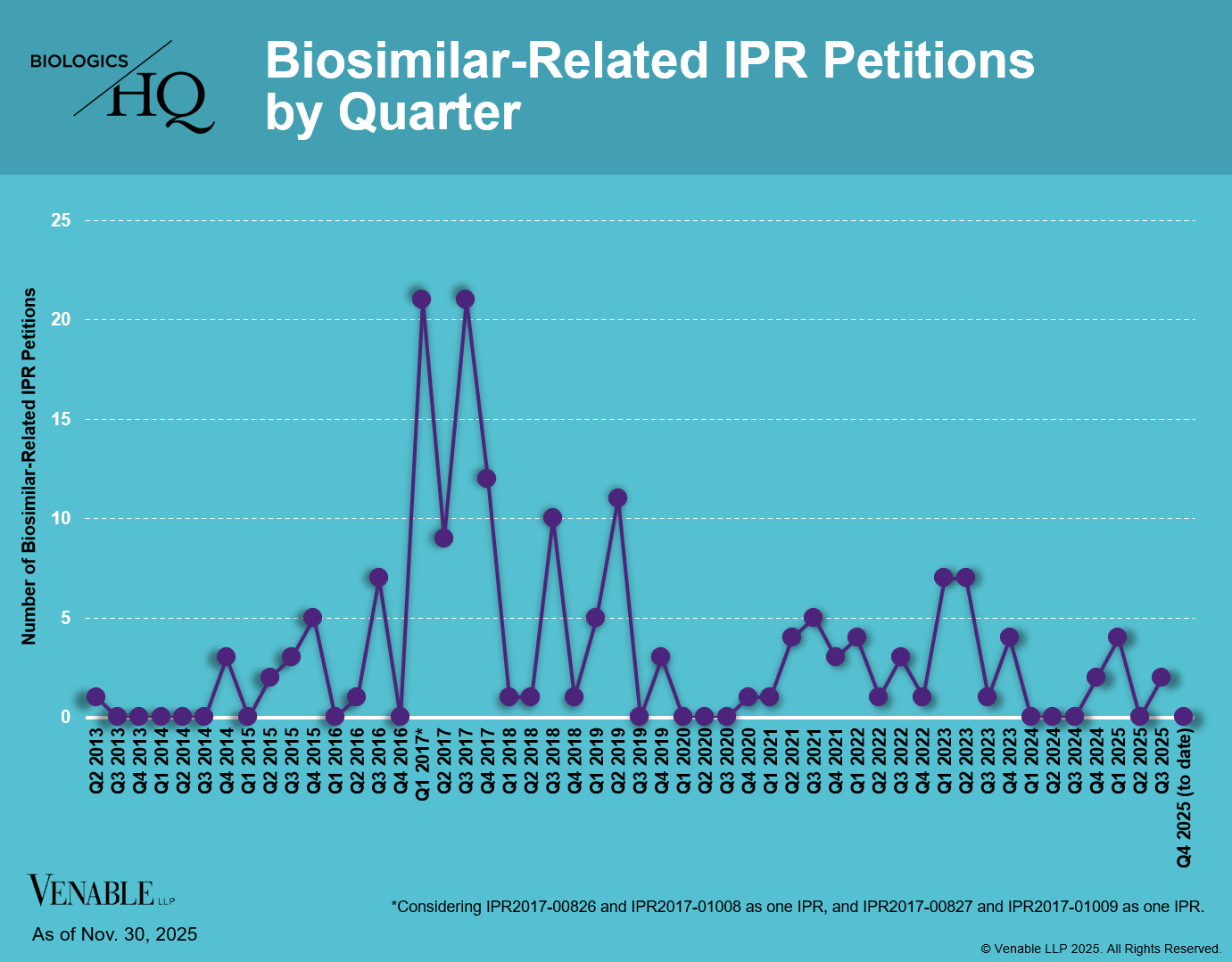 Biosimilar-Related IPR Petitions include IPR petitions relating to biosimilar/follow-on products. IPR petitions relating to disputes between reference product sponsors, or non-practicing entities/universities and reference product sponsors are not included. IPR petitions relating to manufacturing patents that may be relevant to multiple products (for example, U.S. Patent No. 6,331,415 (a “Cabilly” patent)) also are not included.