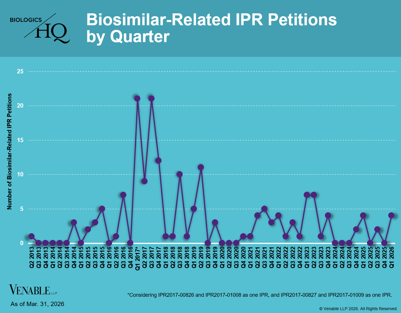 Biosimilar-Related IPR Petitions include IPR petitions relating to biosimilar/follow-on products. IPR petitions relating to disputes between reference product sponsors, or non-practicing entities/universities and reference product sponsors are not included. IPR petitions relating to manufacturing patents that may be relevant to multiple products (for example, U.S. Patent No. 6,331,415 (a “Cabilly” patent)) also are not included.