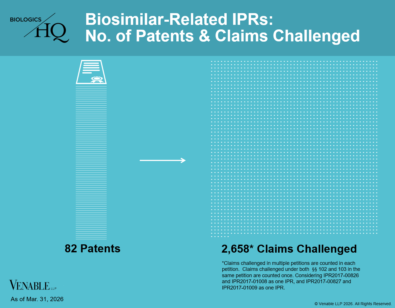 Biosimilar-Related IPR Petitions include IPR petitions relating to biosimilar/follow-on products. IPR petitions relating to disputes between reference product sponsors, or non-practicing entities/universities and reference product sponsors are not included. IPR petitions relating to manufacturing patents that may be relevant to multiple products (for example, U.S. Patent No. 6,331,415 (a “Cabilly” patent)) also are not included.